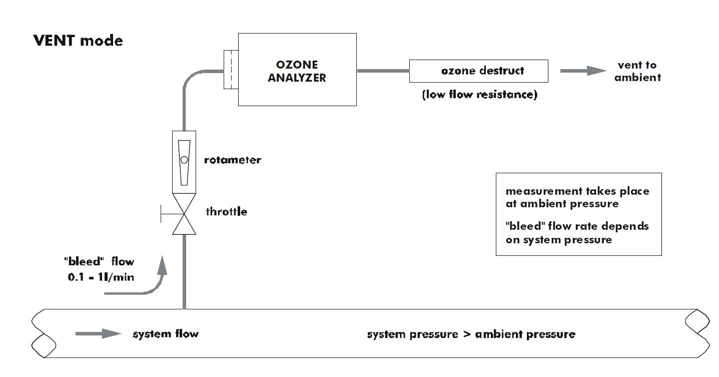 分析儀與臭氧系統的連(lián)接:全流量,旁路,排氣(qì)模式